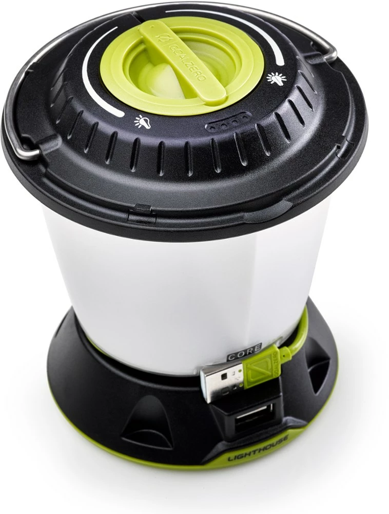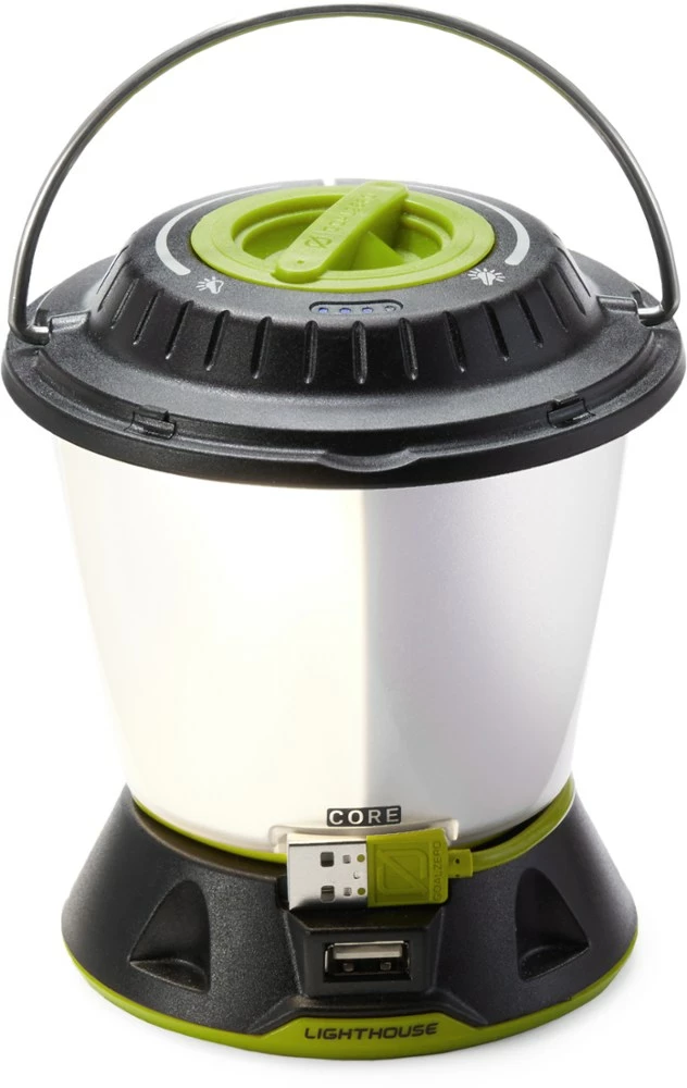 The Goal Zero Lighthouse Core lantern offers a bright and also dimmable 430 lumens that adjust for light direction. Plus, a built-in 1A USB port charges your phone and boosts a tablet’s life.