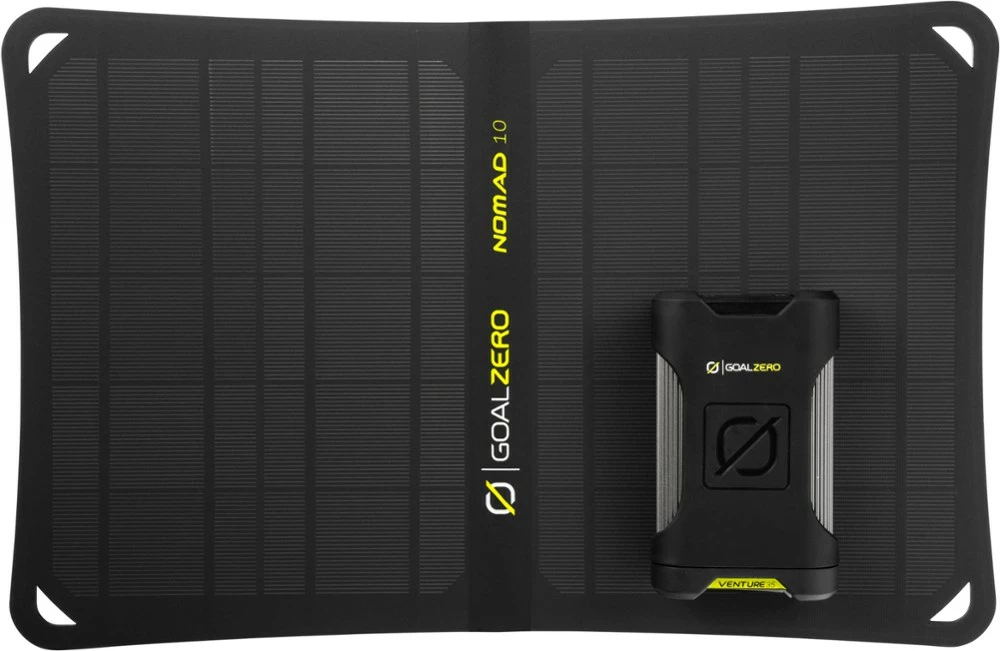 - Kit includes Venture 35 power bank and Nomad 10 solar panel