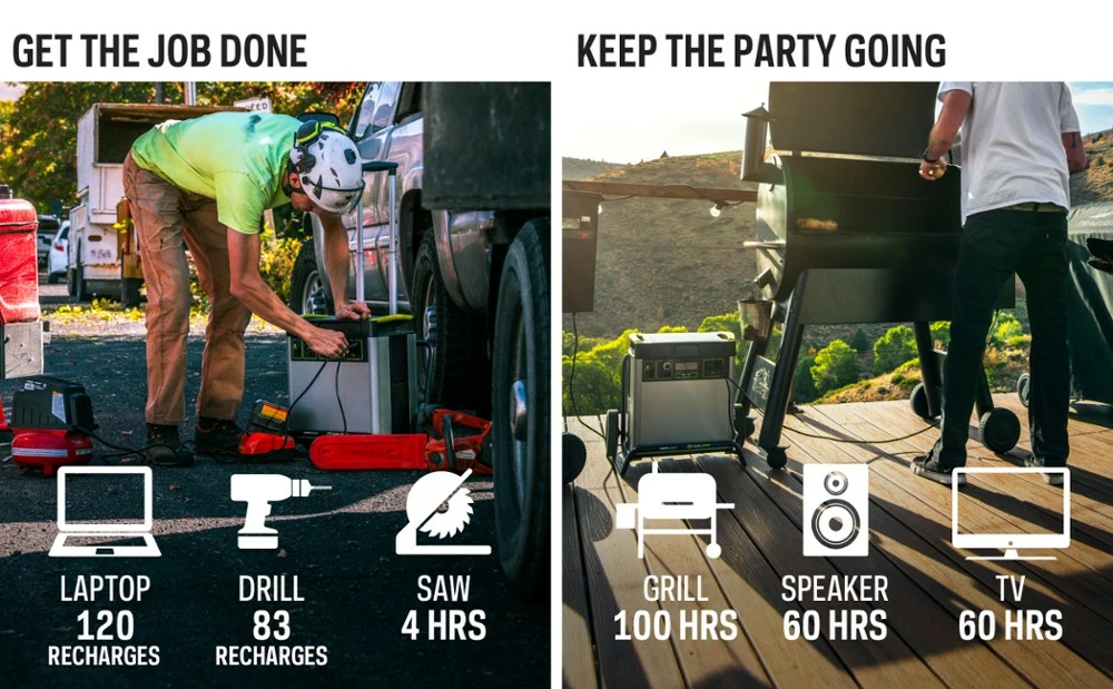 - Lithium-ion battery equips you with 6,071 watt hours of clean, portable power for camping, tailgating, off-grid events, workshops and emergency home backup