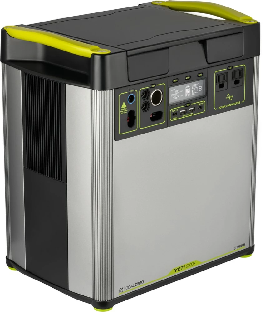 Generate the power you need when you’re off the grid—or during an outage—with Goal Zero Yeti 6000X. With 7 ports for power-hungry appliances, it can power essential home circuits, RVs and more.