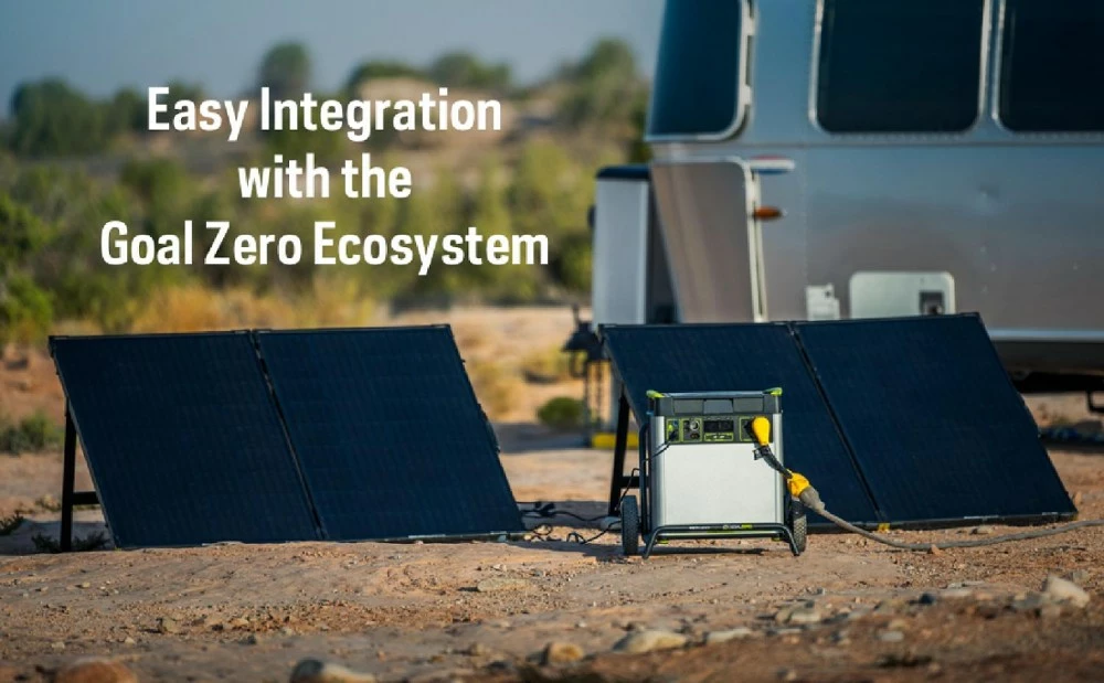 - For best solar charge (12–24 hours charge), use 2 x Goal Zero Ranger 300 Briefcases or 3 x Boulder 200 Briefcases (not included)