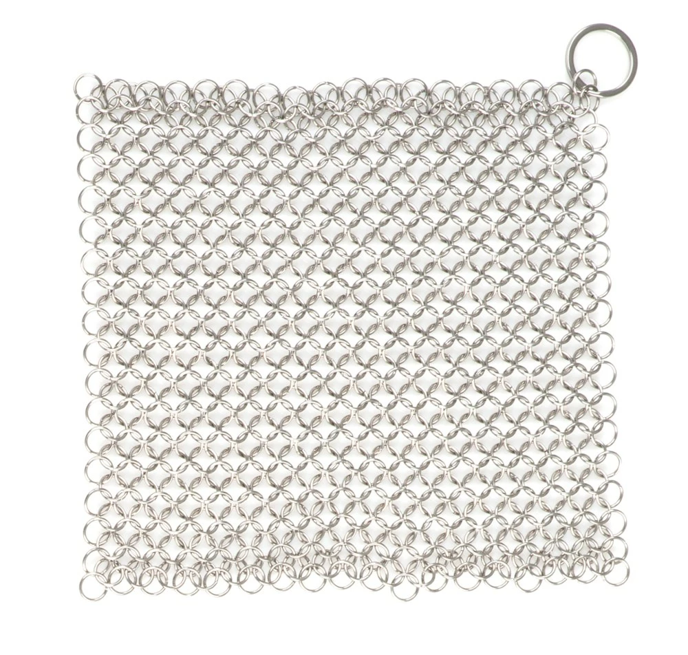 - Chain-mail pot scrubber tears through the most stubborn of burnt-on foods while being gentle on cookware; scrubber is ideal for cleaning cast-iron cookware