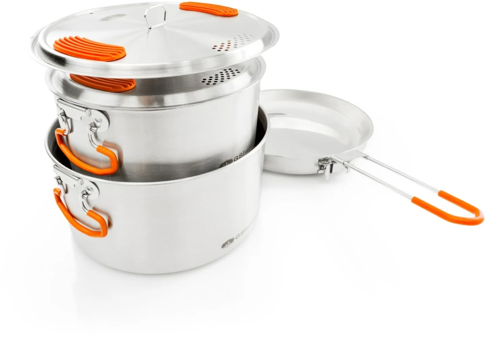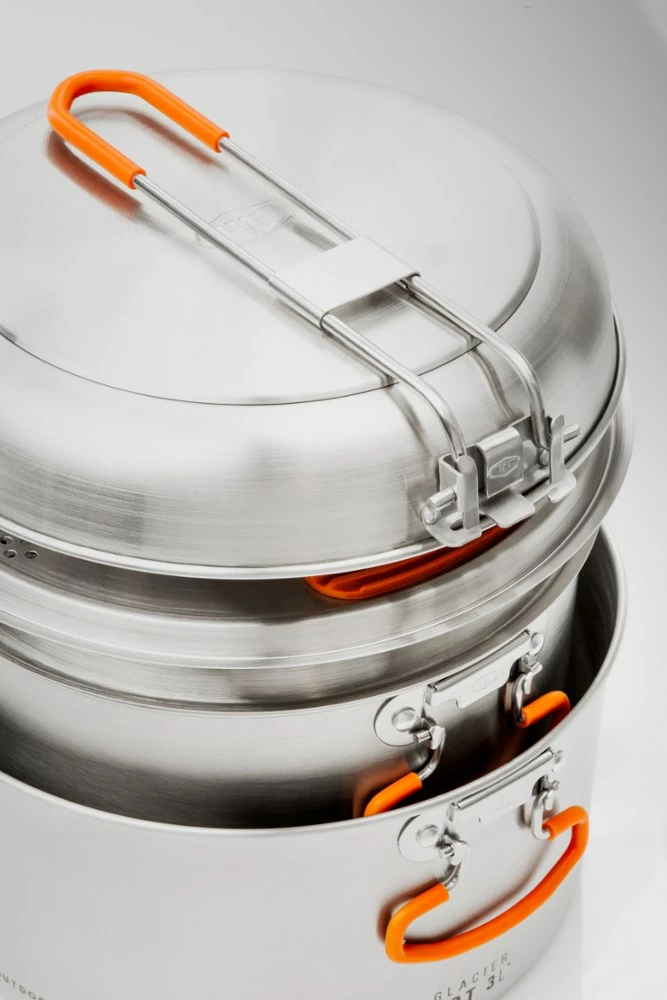 Whether your basecamp is a remote glacier or your local state park, the GSI Outdoors Glacier Base Camper cookset helps you whip up meals with burly stainless steel cookware that packs up small.