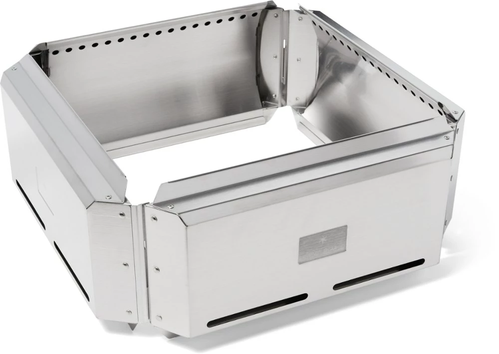 A packable attachment for your Snow Peak Large Pack & Carry Fireplace (not included), the Takibi Floga generates secondary combustion for a more efficient, hotter flame and less smoke.